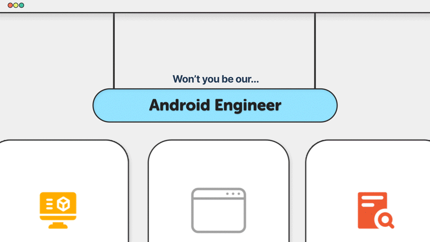The Social Media Lead needed something based on simplicity but playfulness to share the open job posting within the company. The concept was inspired by a carousel being used on an iPad. The composition for the animation was kept simple to keep the focus on the job posting and clearly perceive the queue for the job posting animation within the card.